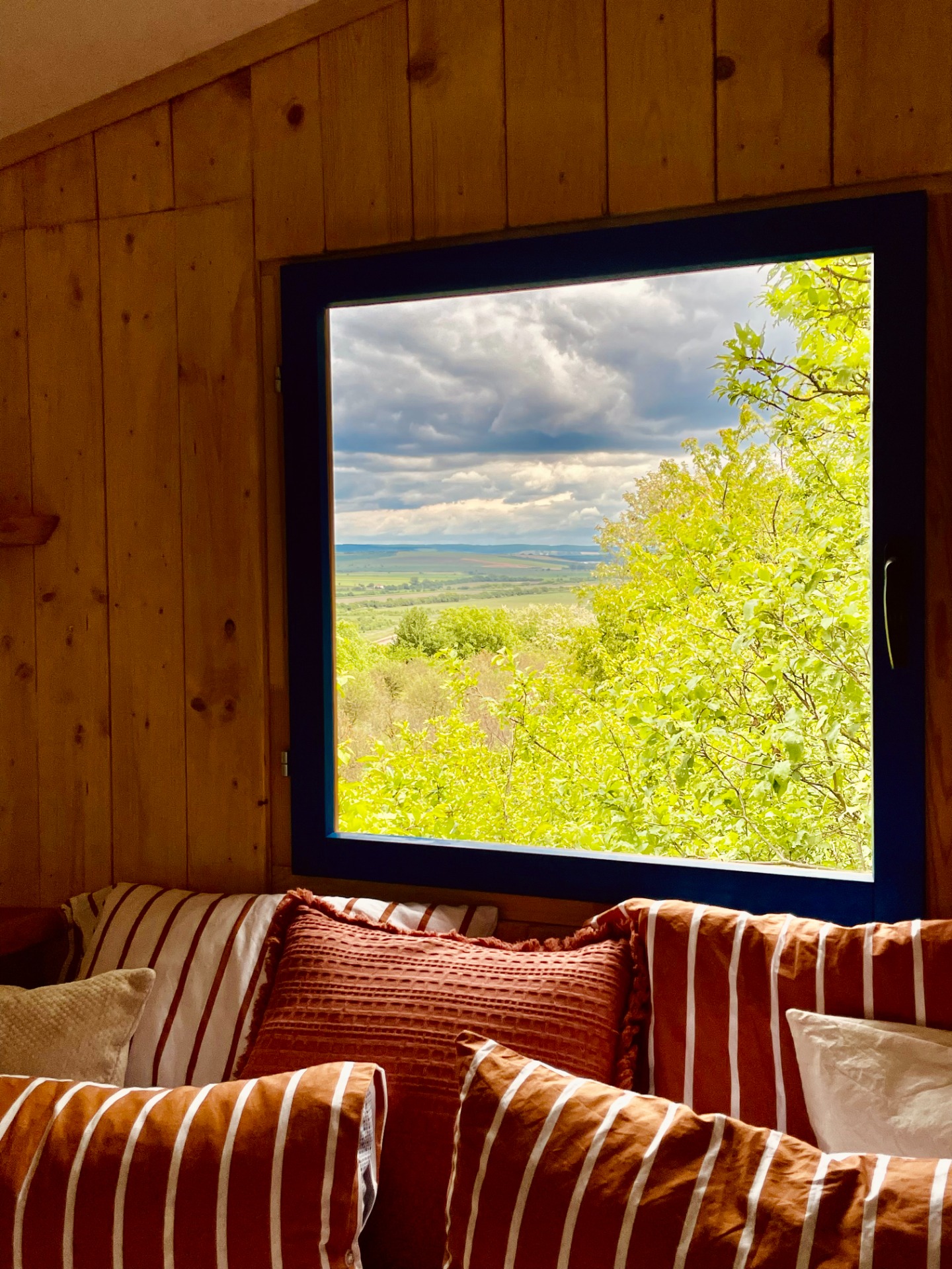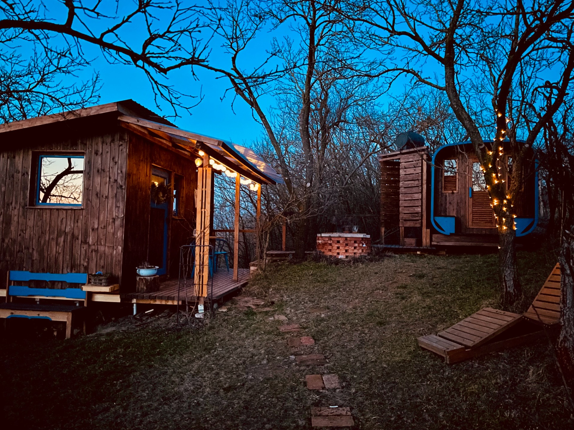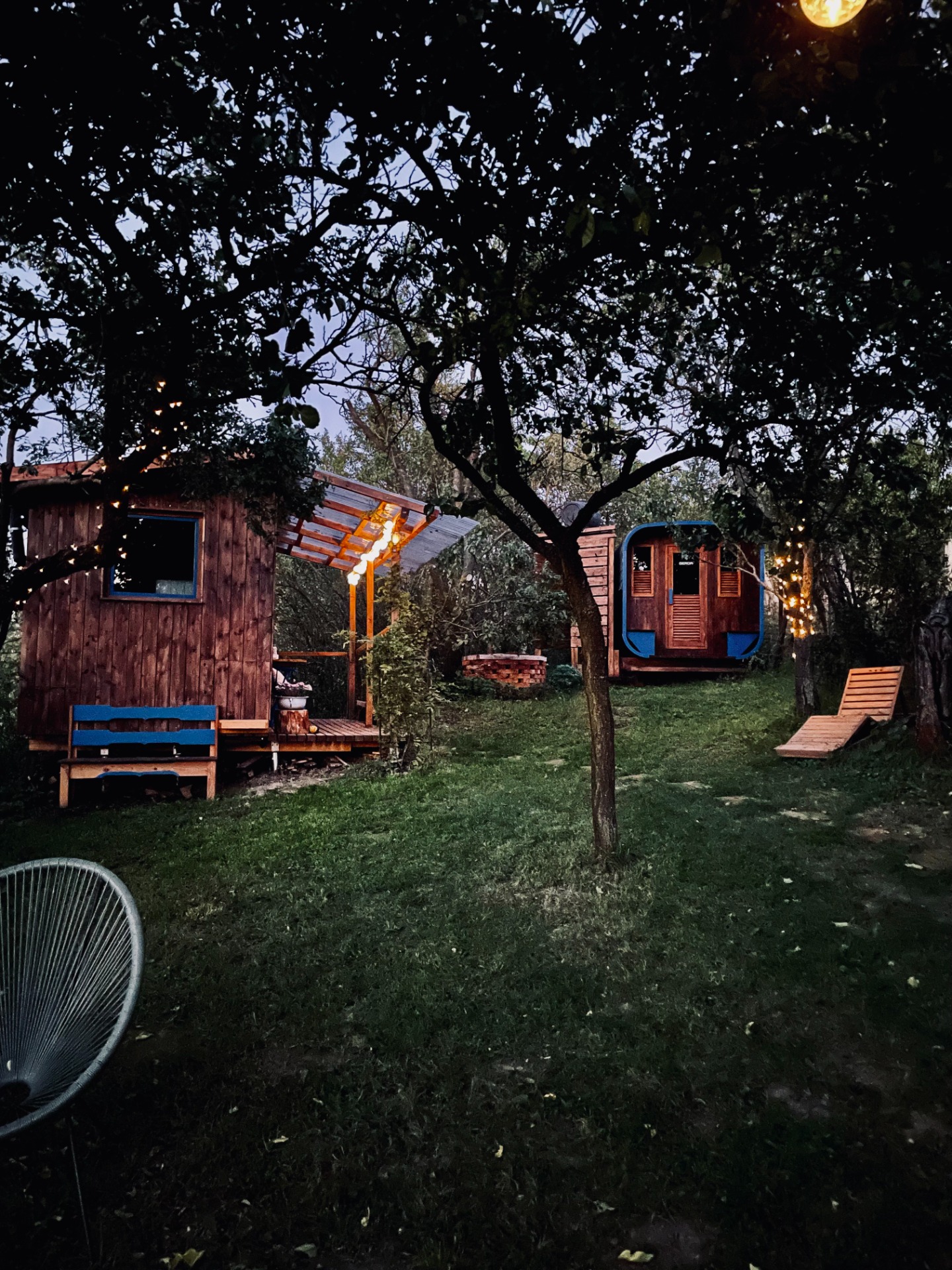 Byl jednou jeden starý zarostlý sad s rozpadlou boudou. Na první pohled nic zajímavého, ale my se do něj zamilovali. Nádherný výhled, velké stromy, západy slunce k nezaplacení. Pár let jsme si představovali, jak by bylo krásné vdechnout mu nový život, postarat se o něj a vytvořit tu další krásné místo a tenhle sad si k nám nakonec cestu našel. Pár měsíců jsme vymýšleli, co tu uděláme. Stromy jsme prořezali, podsadili novými, ale nápad, se kterým bychom rezonovali dlouho nepřicházel. Až po dvou letech jsme měli jasnou vizi a začali tvořit.Postavili jsme malý domeček s dechberoucím výhledem a saunu s venkovní sprchou. Nechybí tu ani krytá teráska na posezení s ranní kávou a ohniště na ty správné letní táboráky